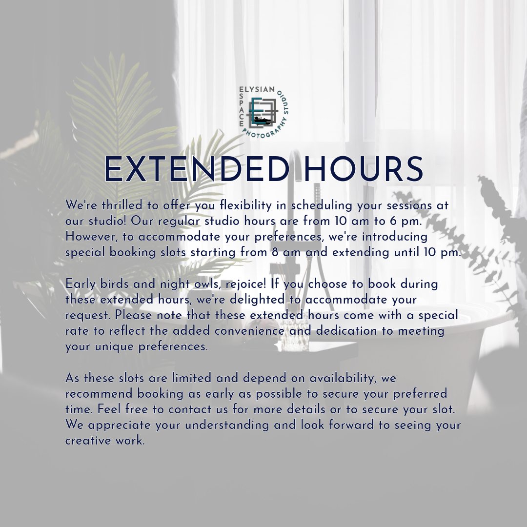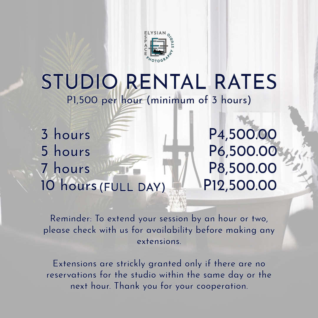 - Studio Rental Rates (Open Monday to Saturday from 10 am to 6 pm)